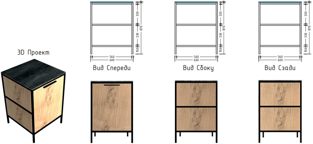 Выполнена из стального профиля черного цвета с порошковым покрытием, которое обеспечивает устойчивость к появлению коррозии и перепадам температуры.